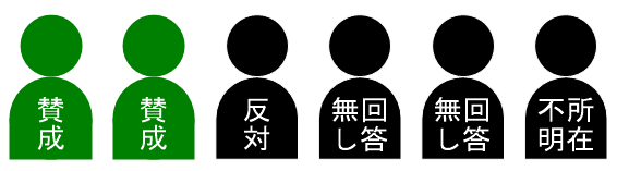 従来であれば 賛成 2名 反対 1名 回答無し2名 所在不明者1名 賛成2名<反対4名 拒否
